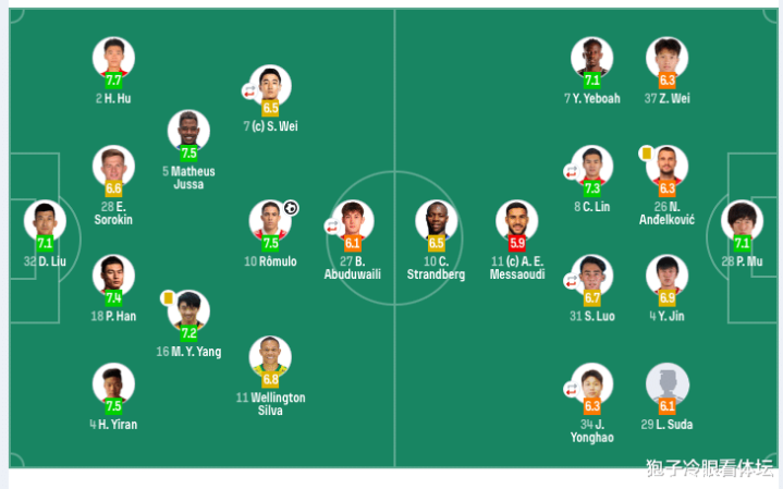 后腰:5-马修斯·茹萨(F)、16-杨明洋;