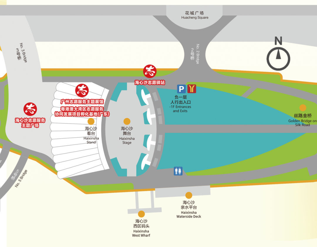 交通指引:(1)公交:乘坐公交293路至海心沙公园站,向西步行约500米,从海心沙3号桥进,左侧“海心沙志愿服务主题公园”标识处,楼梯下二楼;(2)地铁:地铁APM线海心沙站A出口,往亚运看台方向步行约210米,消防救援站旁边楼梯上2楼。(3)自驾:导航至“海心沙亚运公园-地下停车场”,上地面后往亚运看台方向步行约210米,消防救援站旁边楼梯上2楼。